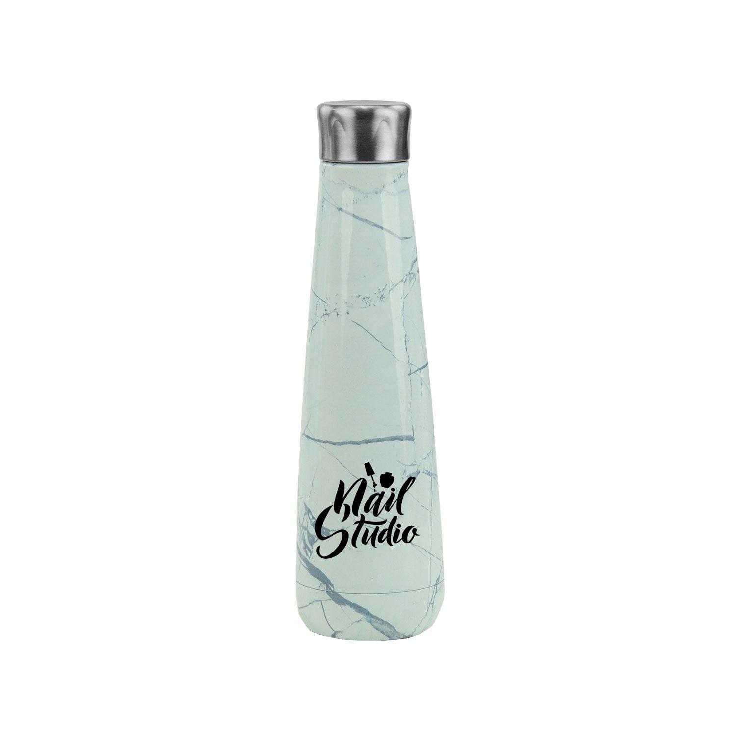 16 oz. Marbled Peristyle Bottle, stainless steel, vacuum-insulated with a marble finish. 2.87″ Diameter x 11.5″ H